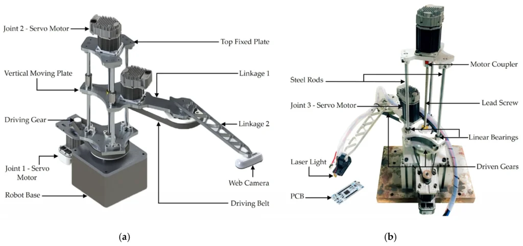 The SCARA robot was developed in the late 1970s, primarily to meet the growing demands of electronics manufacturing. As products became smaller and more complex, industries needed robots capable of handling tiny components with precision and speed. Traditional robotic arms were too large, too slow, or overly flexible for such tasks. Engineers responded by designing a robot with a simpler structure: a base, two parallel rotary joints for horizontal movement, and a vertical linear axis for up-and-down motion.